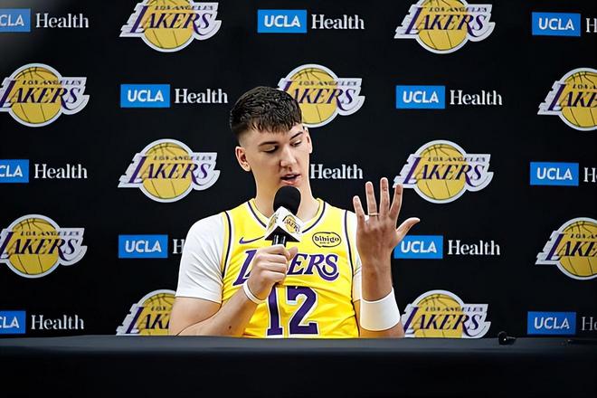 洛杉矶湖人进行了训练营期间的日常训练,训练结束后,球队的锋线新援杰克-拉拉维亚(Jake LaRavia)接受了场边记者的采访,他也在采访中谈到了自己的新东家湖人的相关情况。